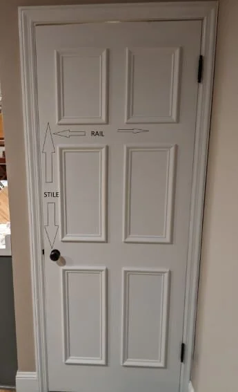 Solid doors are made up of 3 parts: rails, stiles, and panels.