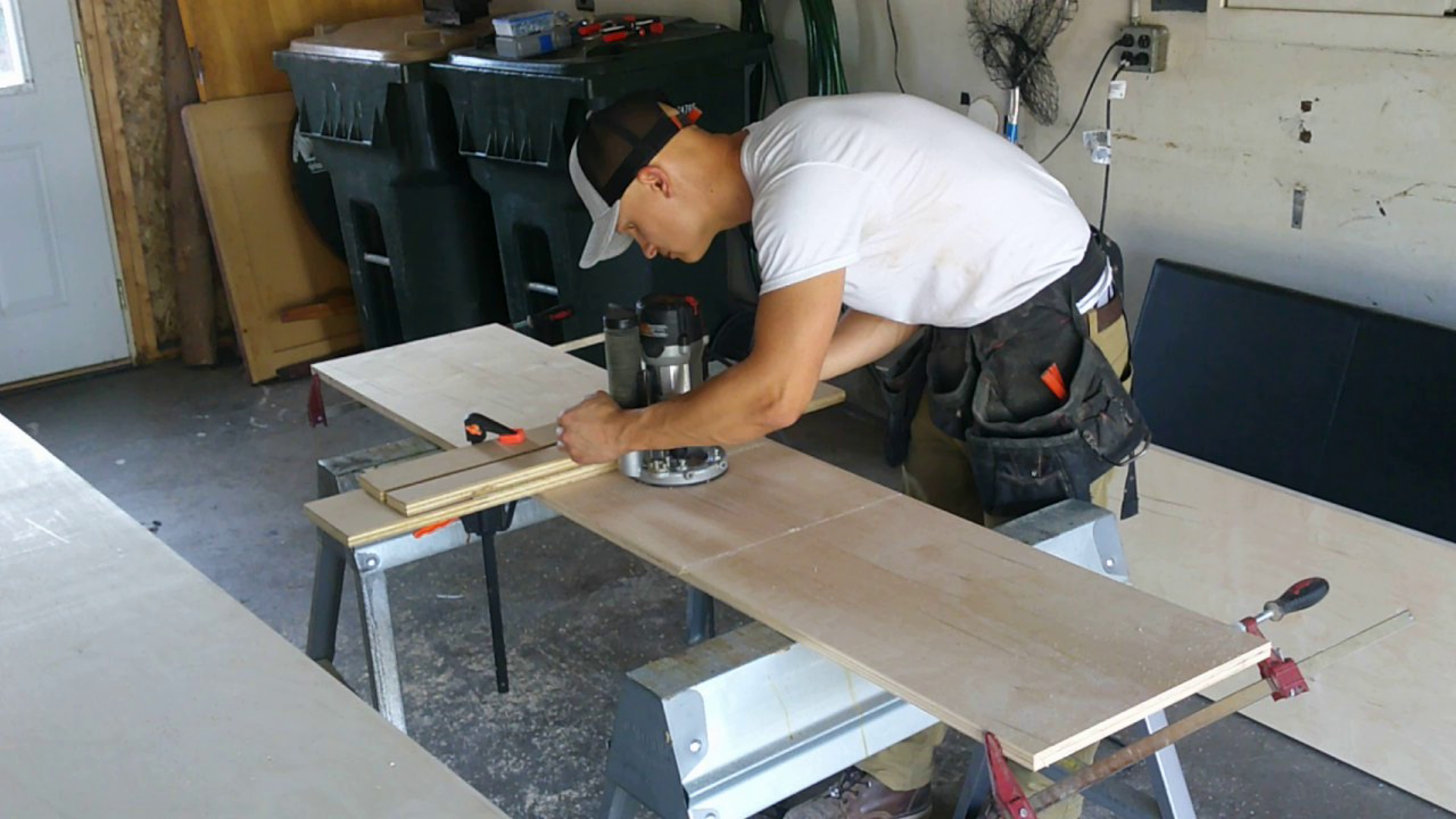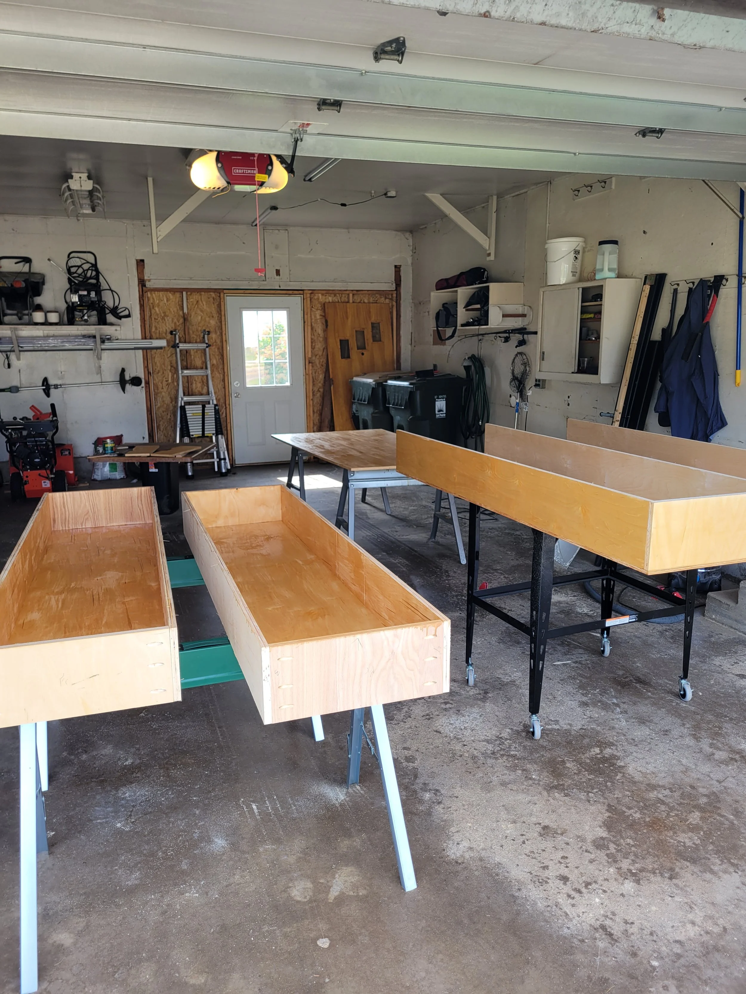 As I was planning on using these drawers for my sketchy contractor business, I wanted to be able to also them for work benches. I nailed small strips of plywood to the insides of the drawers 1/2” from the tops so that I could make plywood covers that would rest on these strips.