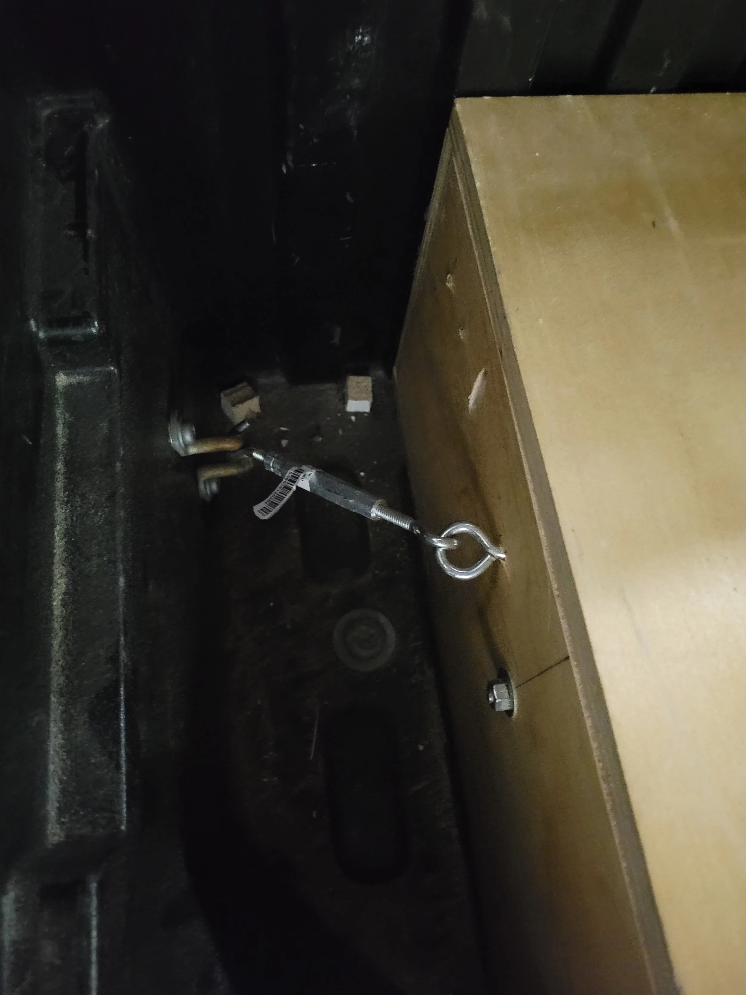 So I channeled my inner pirate and came to the conclusion that a turnbuckle was needed. I already had mounting points in the truck bed. All I needed to do was attach a screw eye on both sides at the back of the assembly and then use turnbuckles to secure them to the bed mounting points. Whenever I want to remove the system all I have to do is loosen the turnbuckles and unhook them. I can remove the entire system in less than 5 minutes. As with most things in life, if it takes more than 5 minutes then you’re not doing it right.