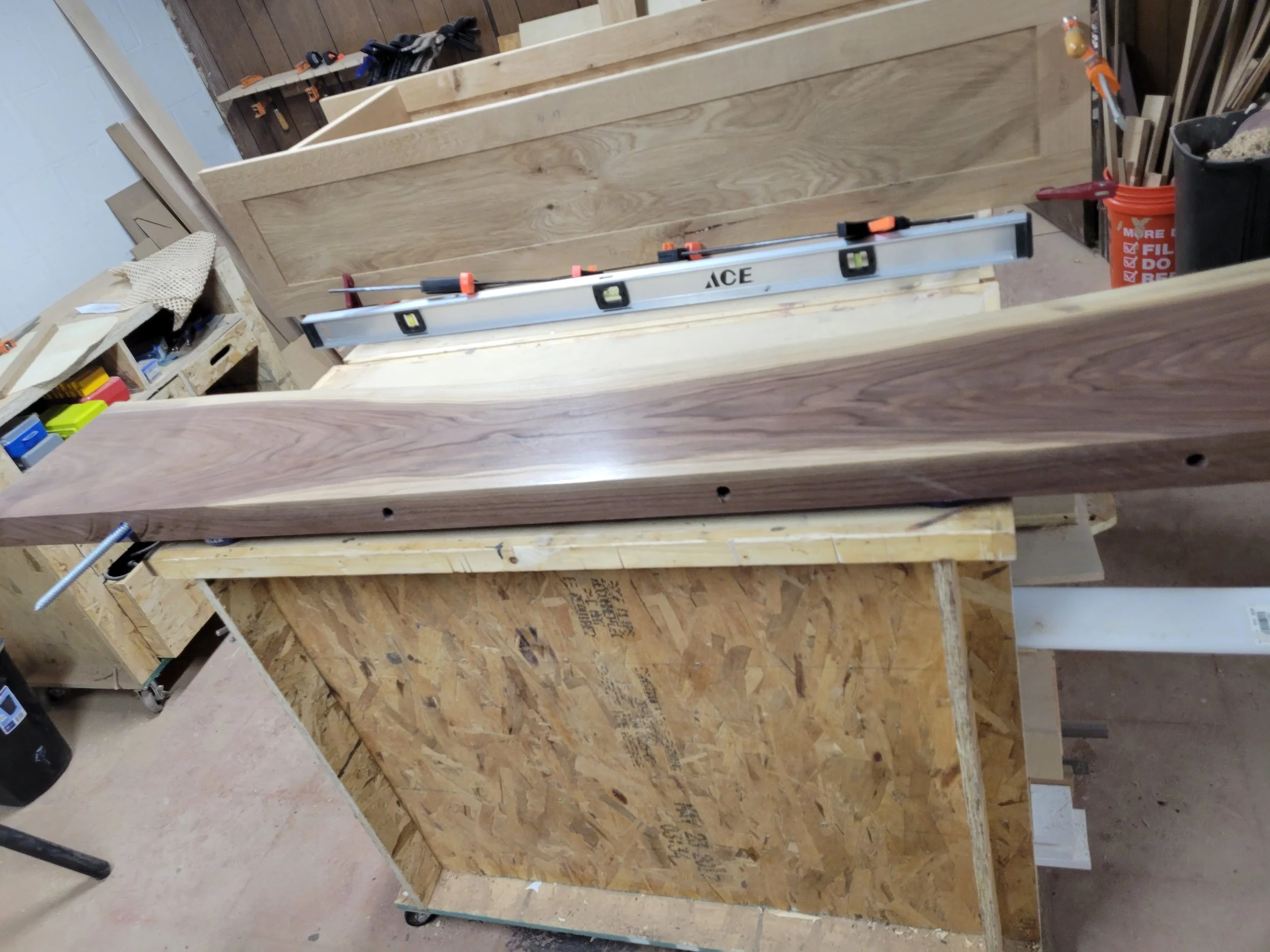 I could have gone to a local Amish mill and bought a slab that was already surfaced but the thickness would have only been 1 3/4”. And we all know thicker is better, so I opted for this thicker one. What I didn’t account for was that after flattening it would only be 2”. And that 1/4” was not worth all the work. I figured that surfacing the slab myself won’t be that bad. But it was more than that bad, it was terrible. Moral of the story: let the Amish do your work for you.